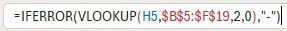 기존 vlookup 함수 앞에 iferror를 입력하고 쉼표(,) 그리고 출력하고 싶은 값 (예제에서는 -를 넣기 위해 "-" 이라고 입력했다)