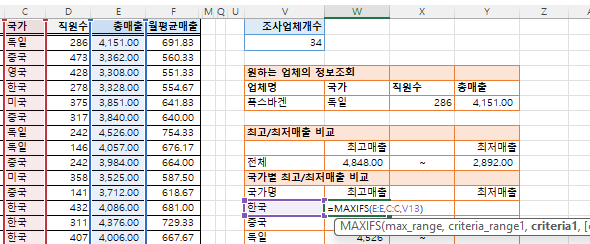 ② 다중조건 함수인 maxifs, minifs, sumifs, averageifs를 익힌다.