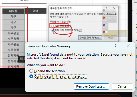ⓐ기준이 되는 목록을 표에서 가져와서, 중복된 항목을 제거함
