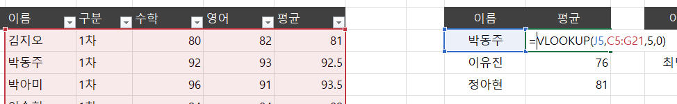 vlookup함수의 찾을 값은 항상 고유값이어야 한다.